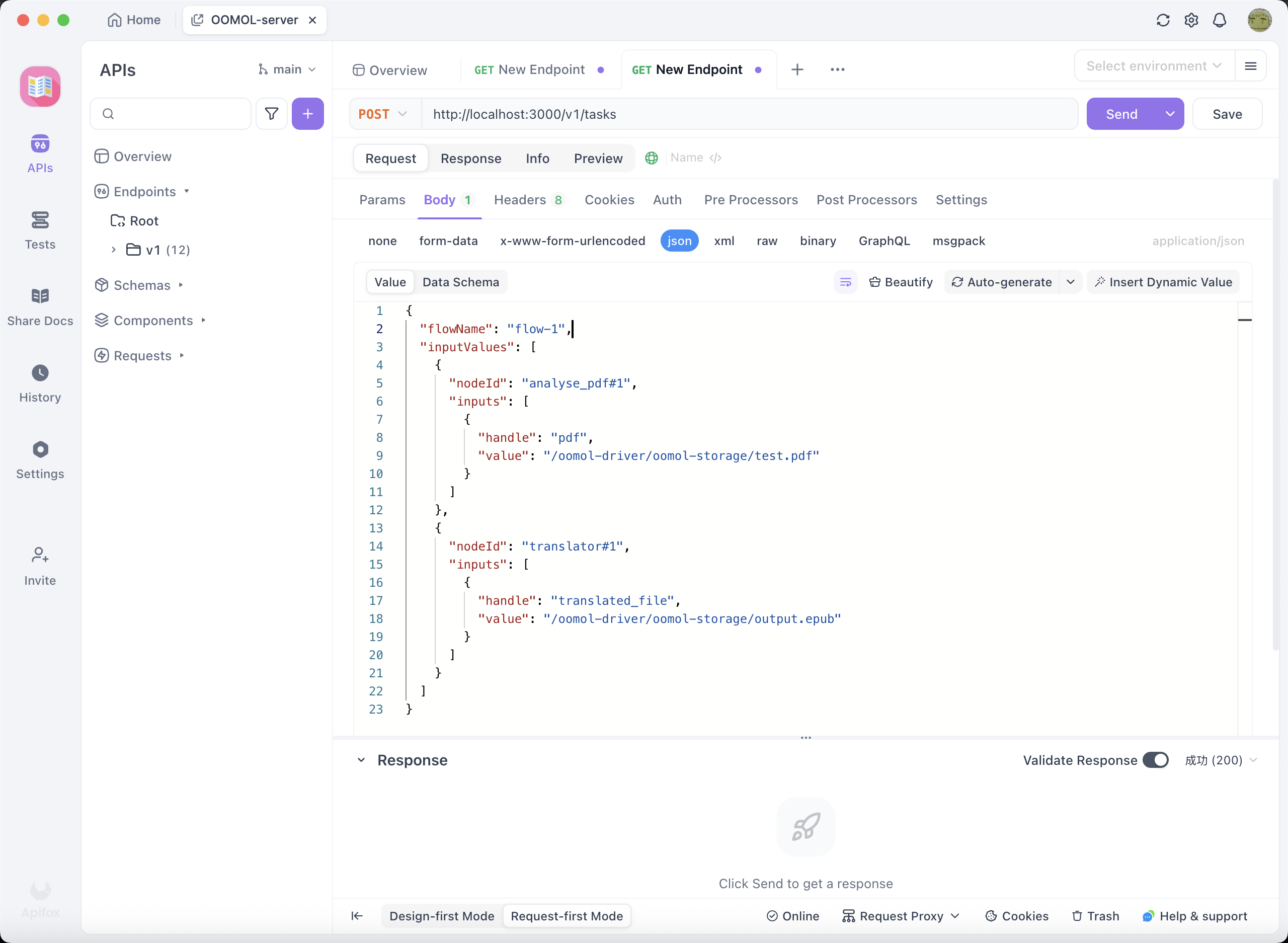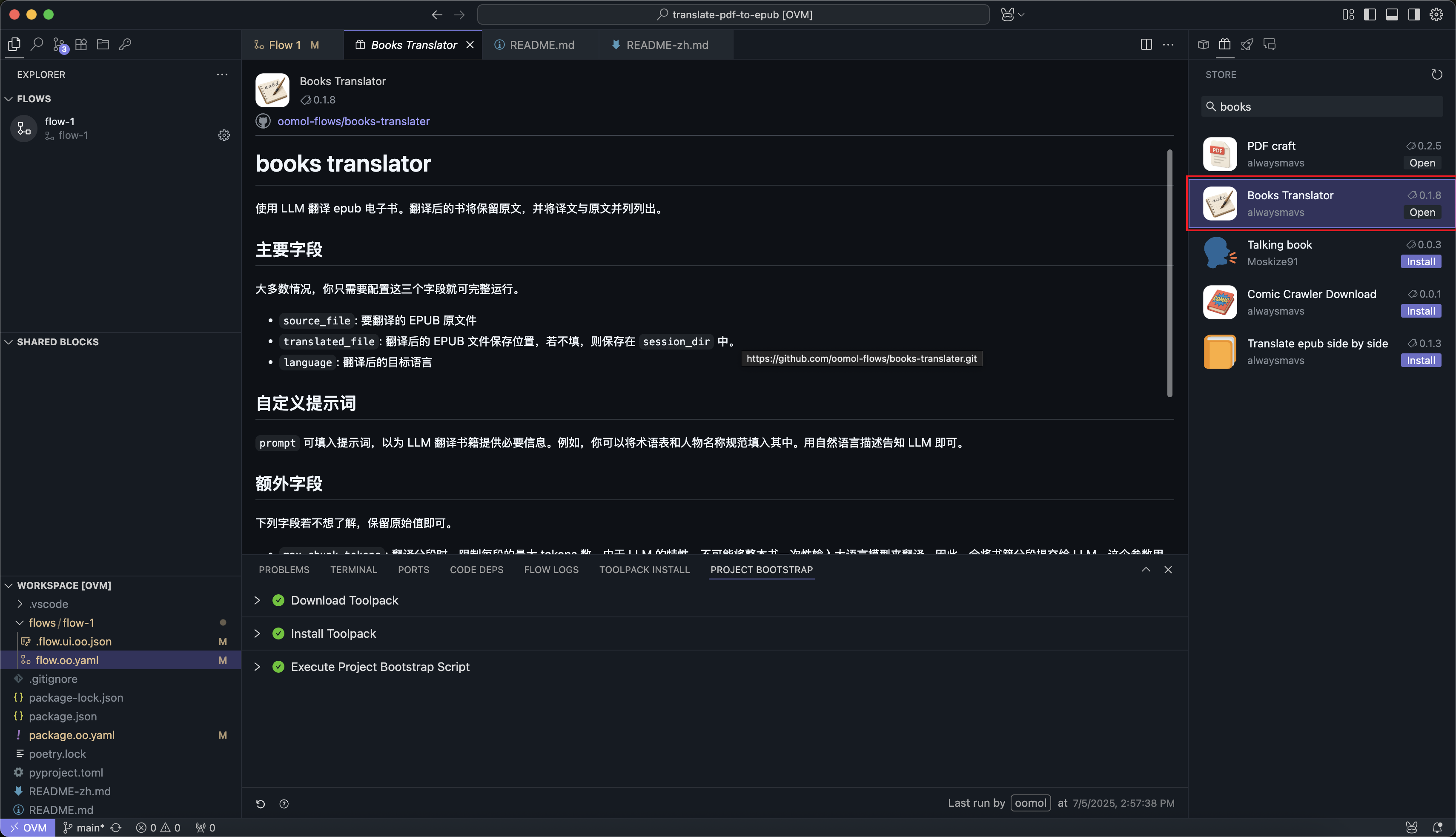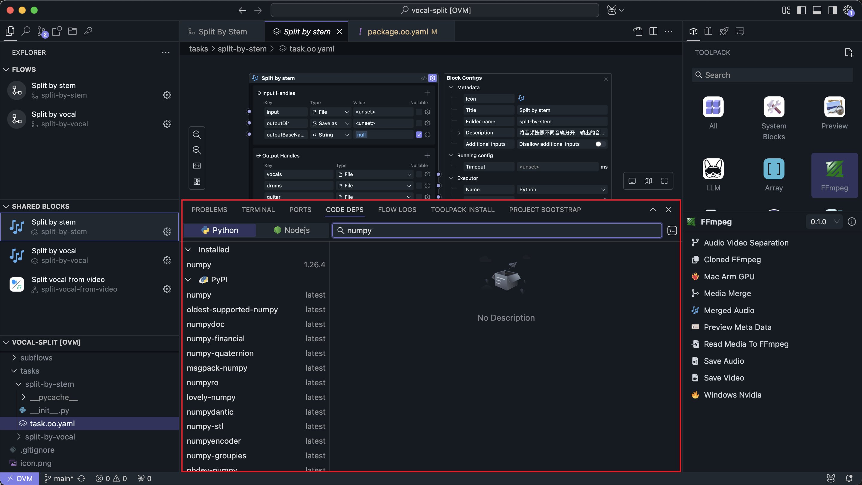 Therefore, OOMOL Studio took this consensus a step further. As a downloadable application, it runs containers with complete code environments locally, enabling the use of complete Node.js and Python community libraries. Complete code support brings workflow development experience and extensibility to the extreme. At the same time, it limits complexity during use through good interaction design, making it easy for ordinary users to get started.