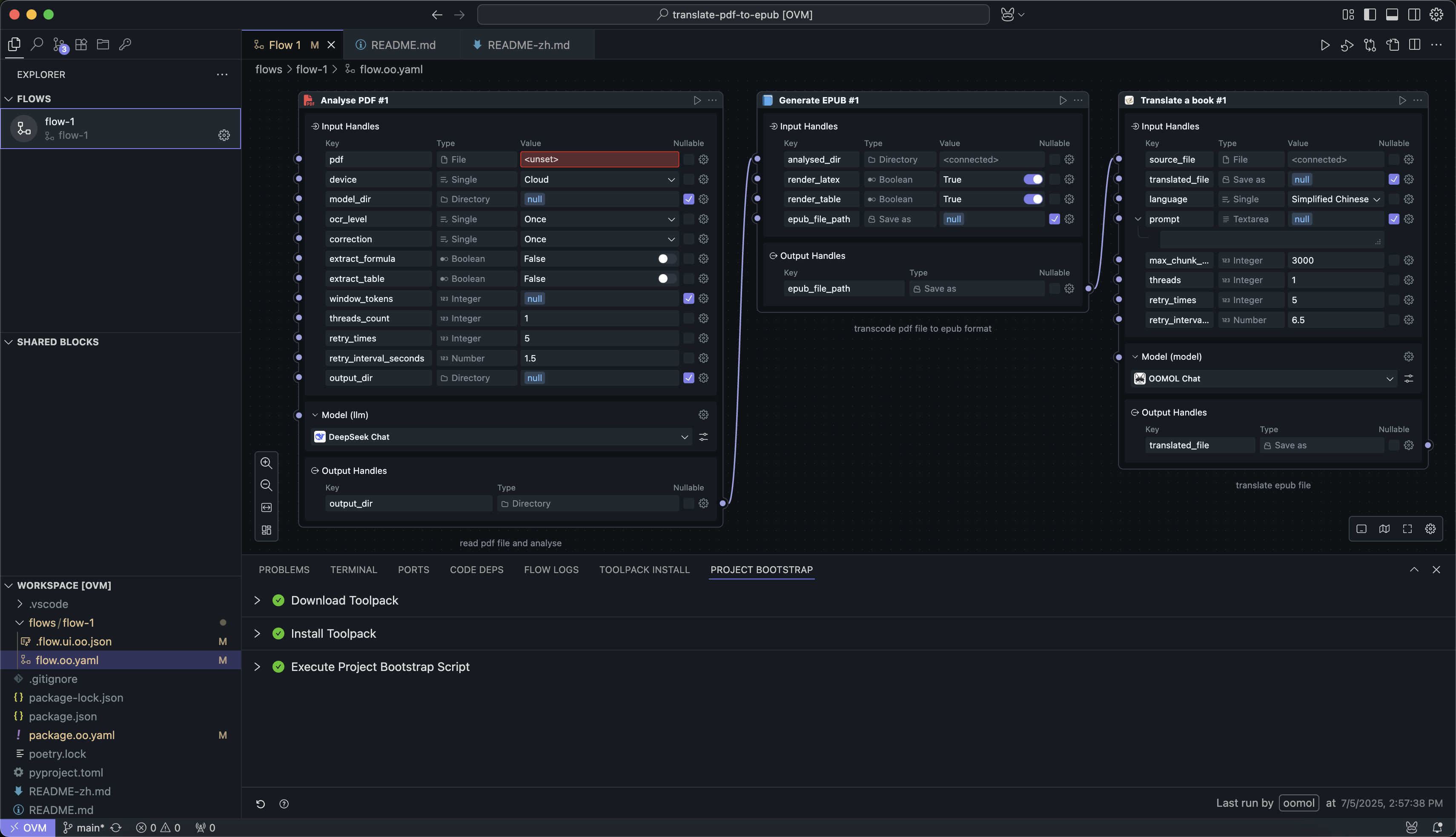 - OOMOL Studio: Containerized, perfect code support, easily extensible, multiple execution methods