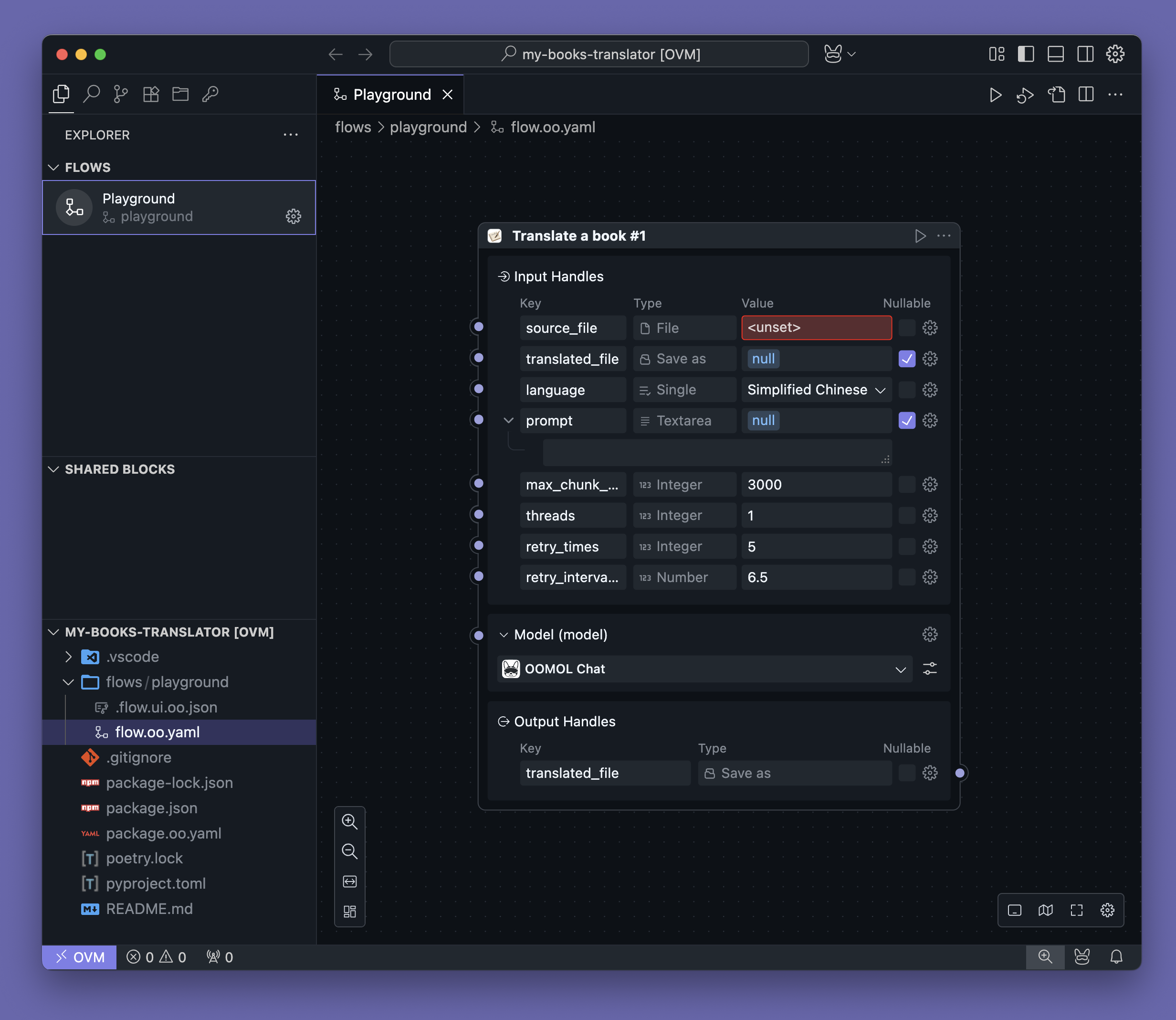 Therefore, OOMOL Studio has the highest degree of freedom and extensibility. Even when built-in applications are insufficient, users can quickly build the nodes they want using code to complete their business. After completing business, they can quickly publish code as platform applications for reuse or sharing.