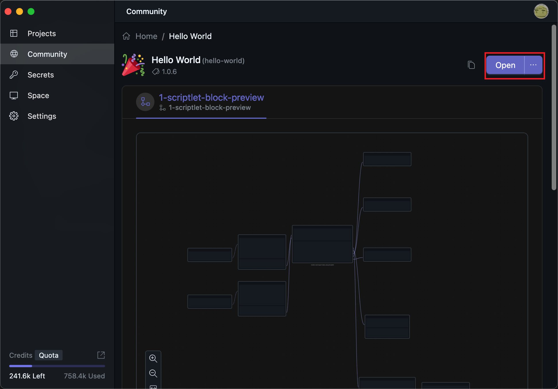 The difference is that projects opened from the community already contain workflows that can be run directly or slightly modified to achieve your desired purpose.