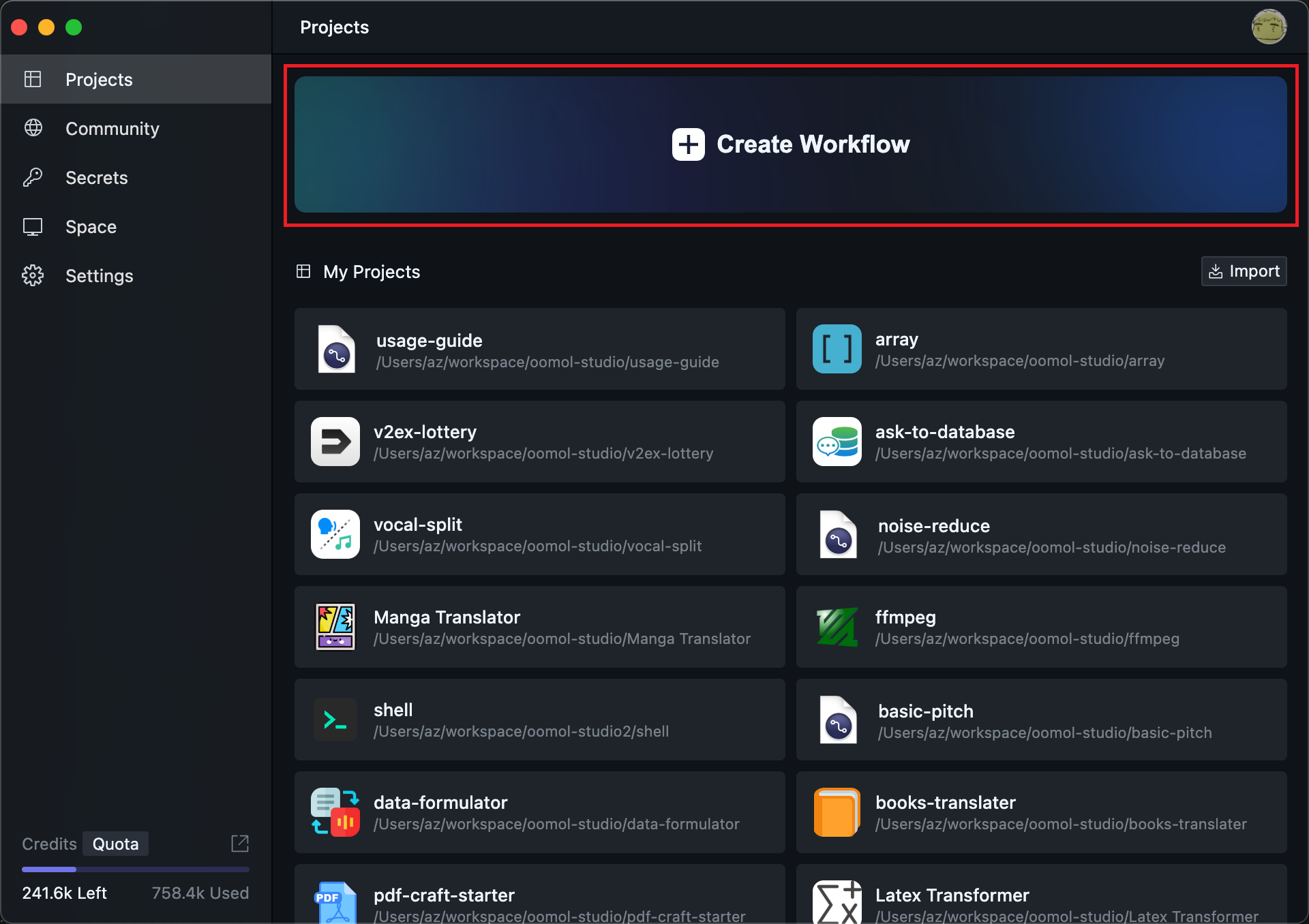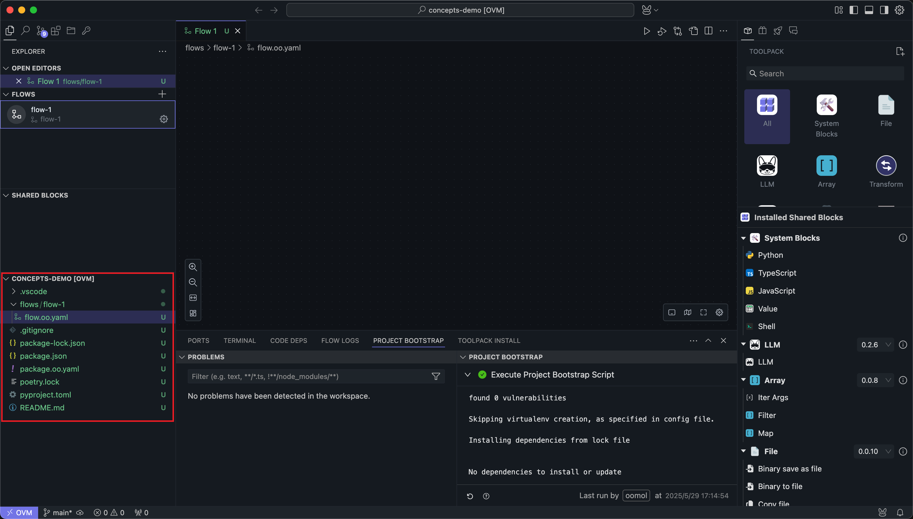 OOMOL Studio also determines whether the current folder belongs to an OOMOL project based on the package.oo.yaml file.
